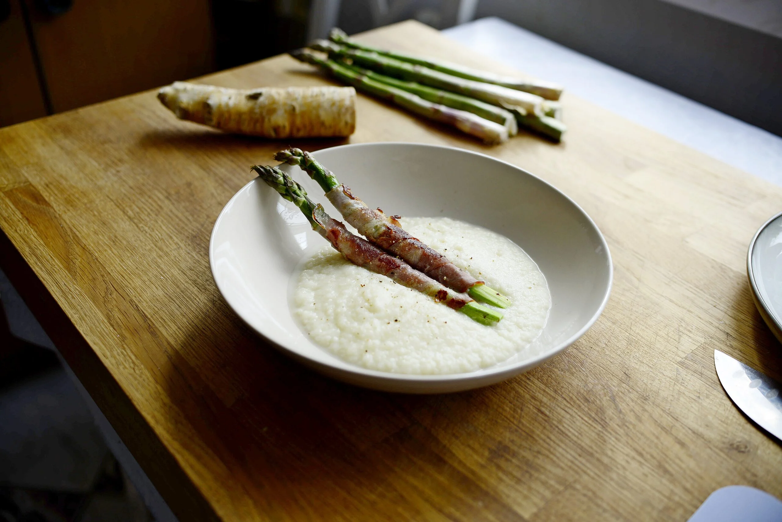 Krem chrzanowy z bekonem i szparagiem