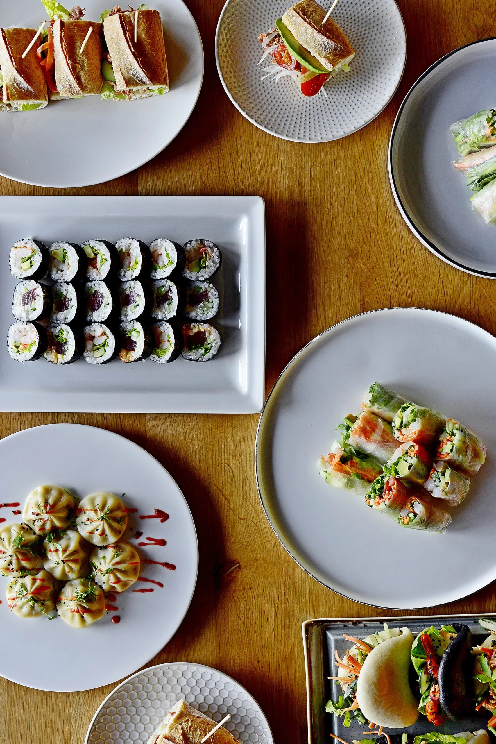 - rainbow maki sushi z tuńczykiem i warzywami